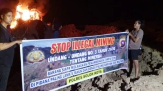 Polres Solok Kota Gempur Tambang Emas Ilegal di Sibarambang, Sarana Dibakar di Tempat!